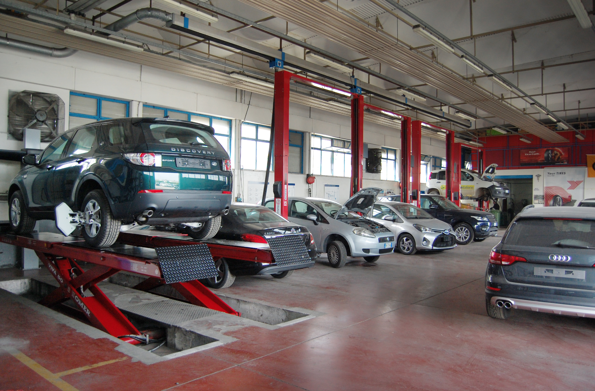 Il reparto autofficina di circa 1500 mq è dotato di 8 postazioni con ponti sollevatori e numerose aree dedicate ai servizi di interventi rapidi